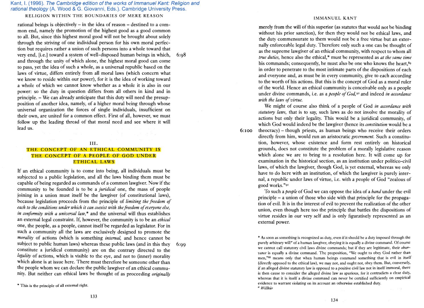 "[The rebirth] has something holy for its end (the formation of a human being as a citizen in a divine state)". (Text)/(AA VI:199)